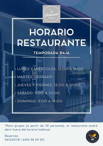 Con el objetivo de mejorar el funcionamiento del restaurante y ofrecer un servicio más ordenado, estable y de mayor calidad durante todo el año, el Club junto con el restaurante, ha acordado una reorganización del servicio durante los meses de temporada baja.