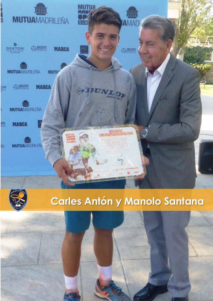 Carles antó recibió el trofeo de manos de Manolo Santana, el director del Mutua Madrid Open, que estuvo presente en la entrega de premios.