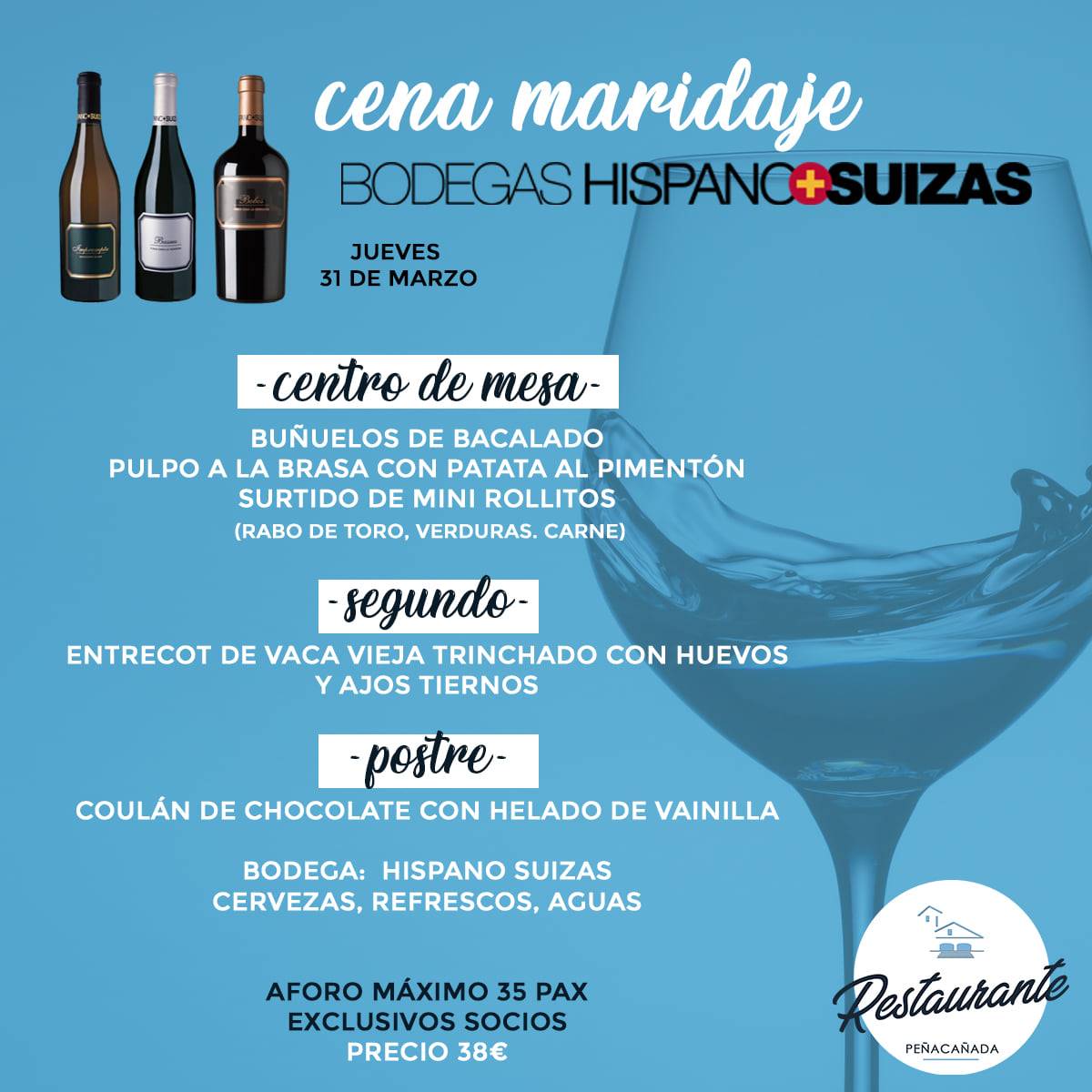 El próximo jueves 31 de marzo el Restaurante de Peñacañada presenta un menú con maridaje de Bodegas Hispano Suizas.