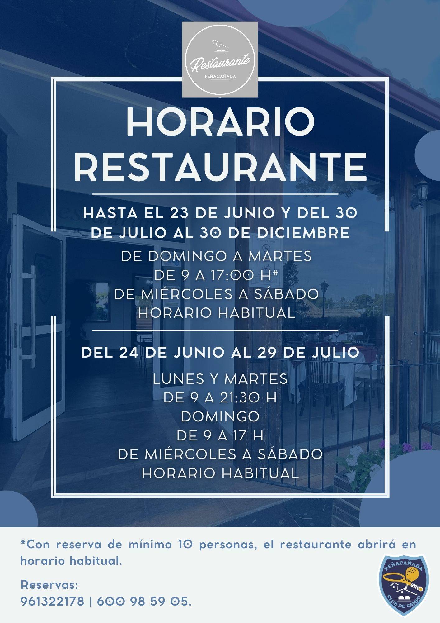 Desde esta semana el Restaurante de Peñacañada cambia su horario de apertura hasta el 23 de junio y del 30 de julio al 30 de diciembre del siguiente modo: