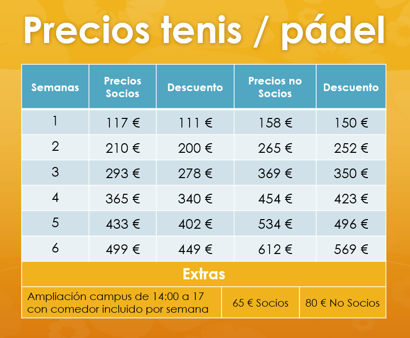 Información Campus verano pre tenis, tenis y pádel