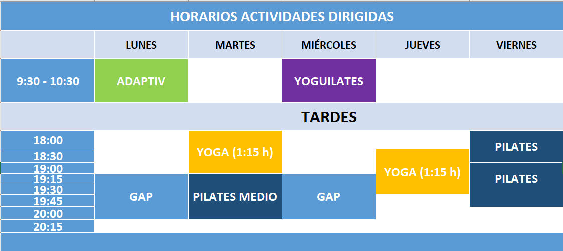 🧘Actividades dirigidas – yoga, pilates, yoguilates, GAP y adaptiv. Inscríbete AQUÍ.