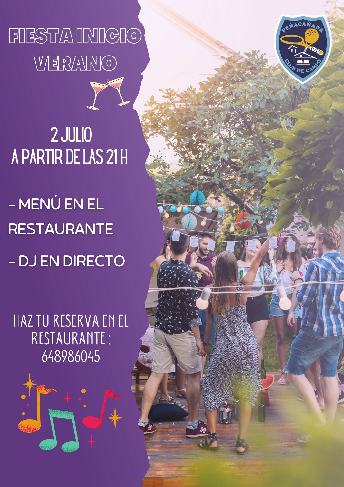 El sábado 2 de julio celebraremos el inicio del verano por todo lo alto con una Fiesta en el club. Comenzará a a partir de las 21 horas con una cena elaborada por el Restaurante de Peñacañada y seguiremos dando la bienvenida a la temporada estival con música en directo a cargo de DJ Foky.