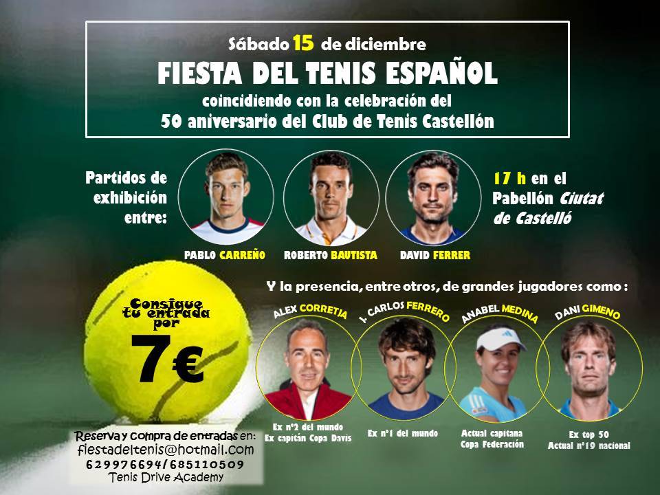 Este mismo sábado 15 de diciembre tendrá lugar la Fiesta del Tenis español en en el Pabellón Municipal Ciudad de Castellón.