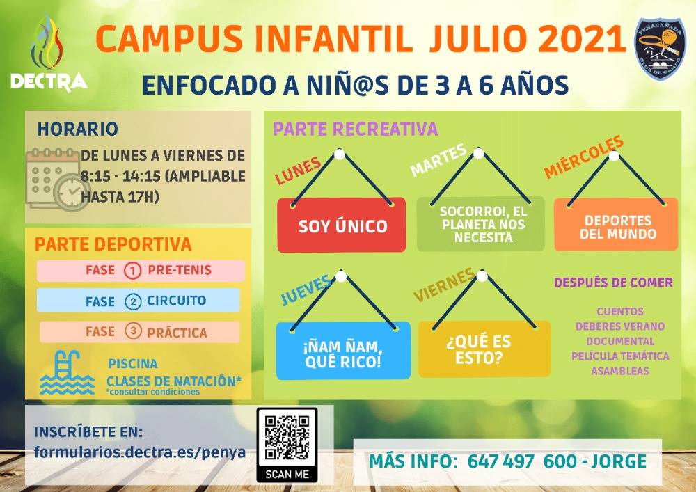 Empieza la cuenta atrás para una nueva edición de nuestro mayor evento del año: el Campus de Verano de Peñacañada. Empezaremos oficialmente la semana del lunes 28 de junio hasta el 30 de julio de 8:15 a 14:15 (ampliable con comedor hasta las 17h)