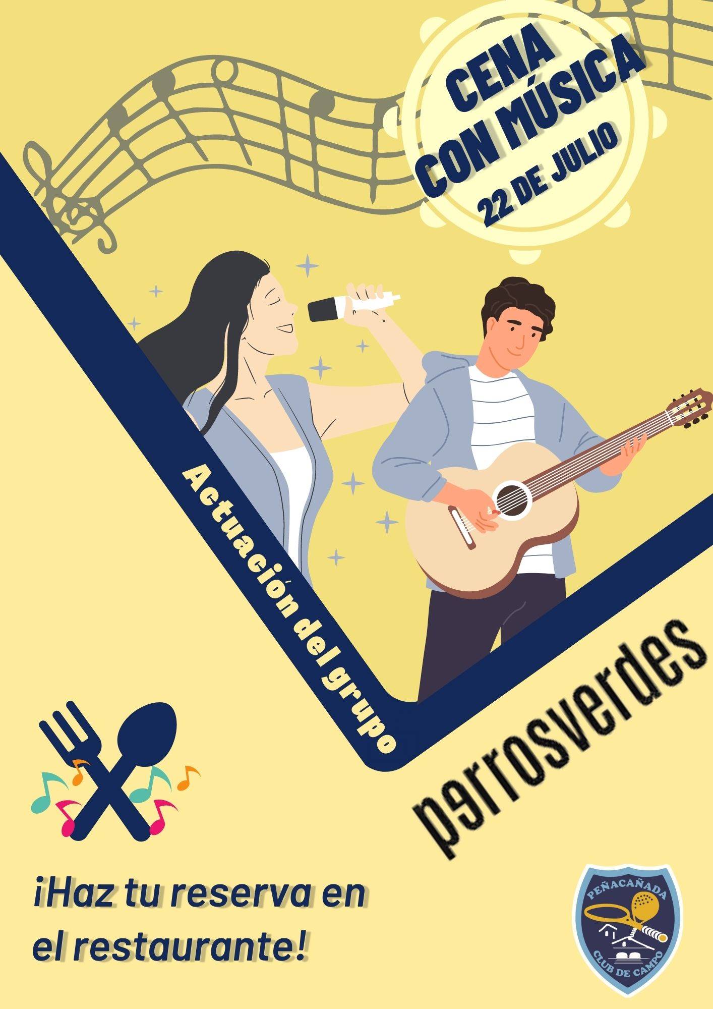 El próximo sábado 22 de julio ven a disfrutar de los platos más exquisitos del Restaurante acompañados de los acordes del grupo musical acústico, Perros verdes, formado por Toño Bravo a la guitarra y la voz de Pepa Bravo.