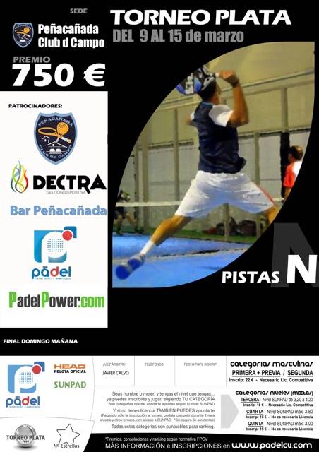DISPONIBIIDAD DE PISTAS DE PADEL DURANTE EL 1º TORNEO PLATA PEÑACAÑADA