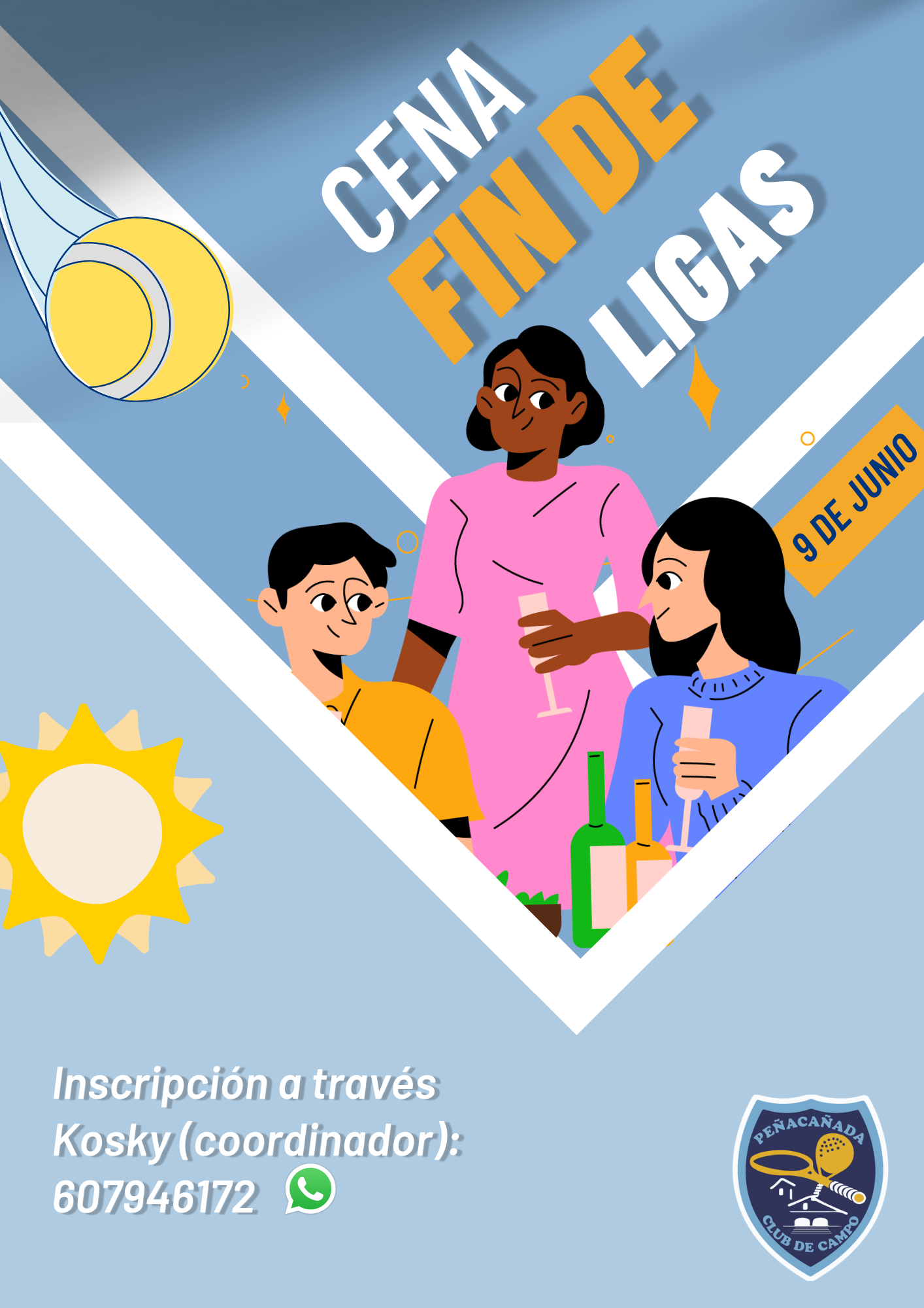 El próximo viernes 9 de junio, a las 21 h, cerramos la temporada de las ligas de tenis y pádel, que se han jugado durante el curso, por todo lo alto, y como más nos gusta, con una cena de confraternización.
